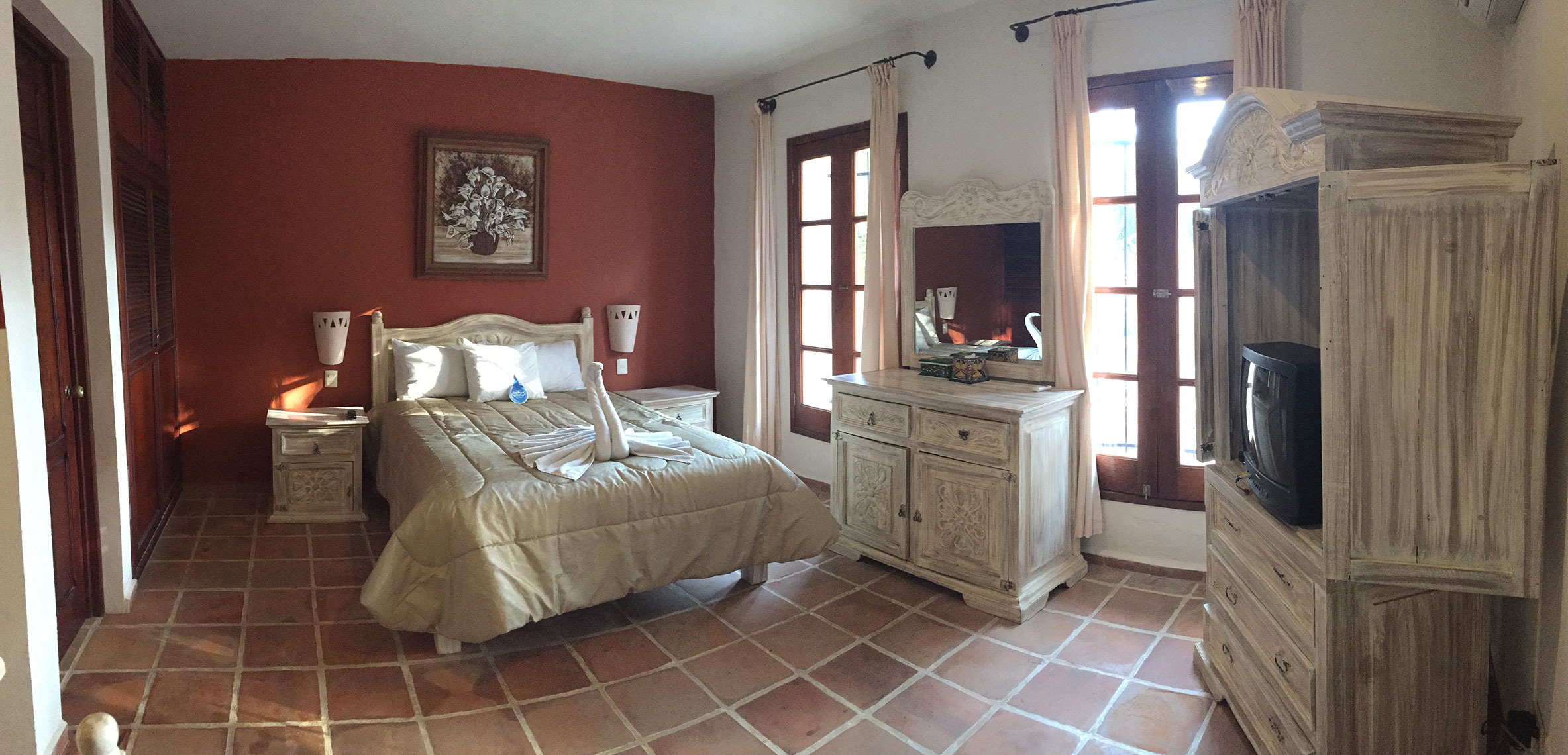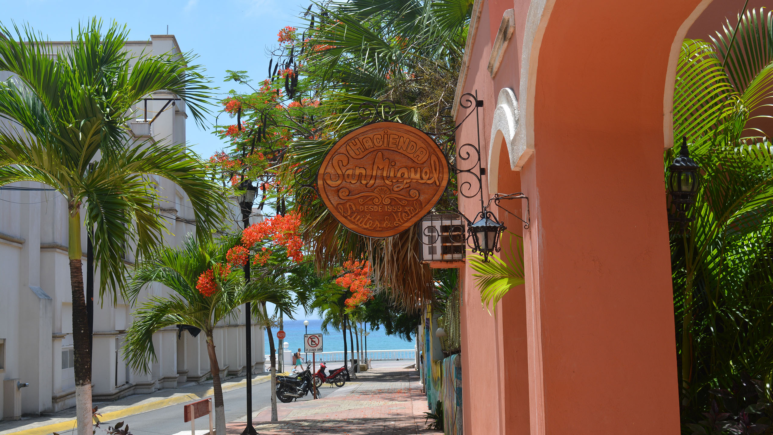 Hacienda San Miguel es un hotel pequeño y tranquilo con 11 estudios y suites ubicado en el centro de Cozumel, a sólo media cuadra del malecón. Este hotel fue inspirado en la auténtica arquitectura colonial  y rodea un jardín relajante lleno de flores multicolores y plantas tropicales.